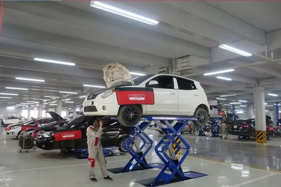 Xưởng dịch vụ showroom KIA Phạm Văn Đồng có diện tích 5200m2 được đầu tư cơ sở vật chất, kỹ thuật hiện đại, bao gồm: khu vực sửa chữa thân vỏ, máy chuẩn đoán, máy kiểm tra bình điện, phòng sơn nhanh, phòng sơn sấy, hệ thống pha sơn vi tính, khu đồng sơn xe mới và kho phụ tùng chính hãng.