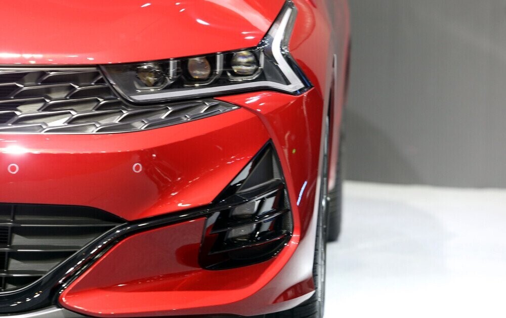 Đầu xe sử dụng lưới tản nhiệt dạng mũi hổ đặc trưng nhưng có kích thước lớn hơn và thiết kế dữ dằn hơn. Xe được trang bị đèn chiếu sáng LED Projector. Thiết kế dải đèn LED chạy ban ngày màu hổ phách với hình dáng chữ "L" được uốn cong bao trọn cụm đèn pha. K5 sử dụng đèn sương mù trước LED. Hốc hút gió được với tạo hình hầm hố được đặt phía dưới giúp tăng tính khí động học cho xe.